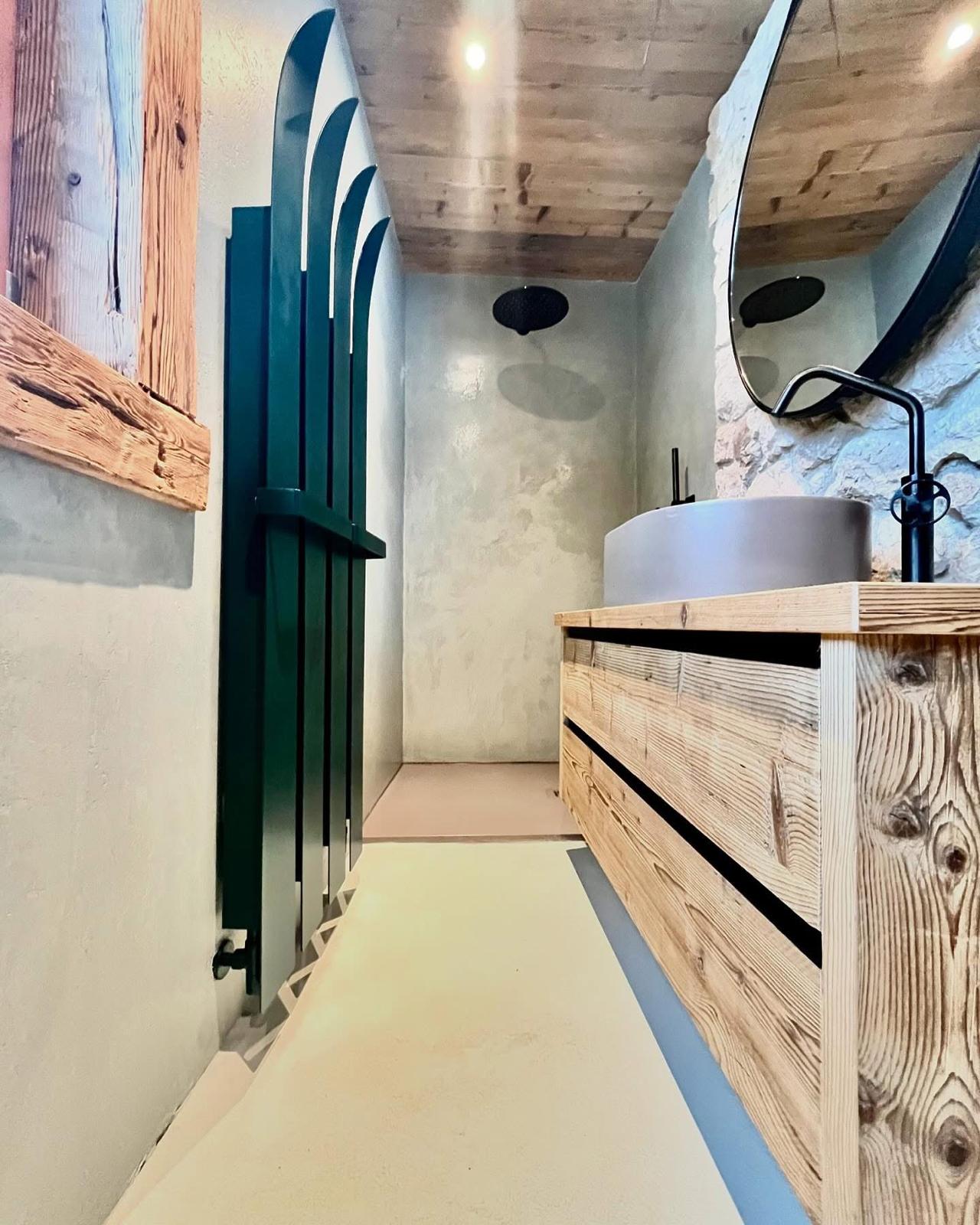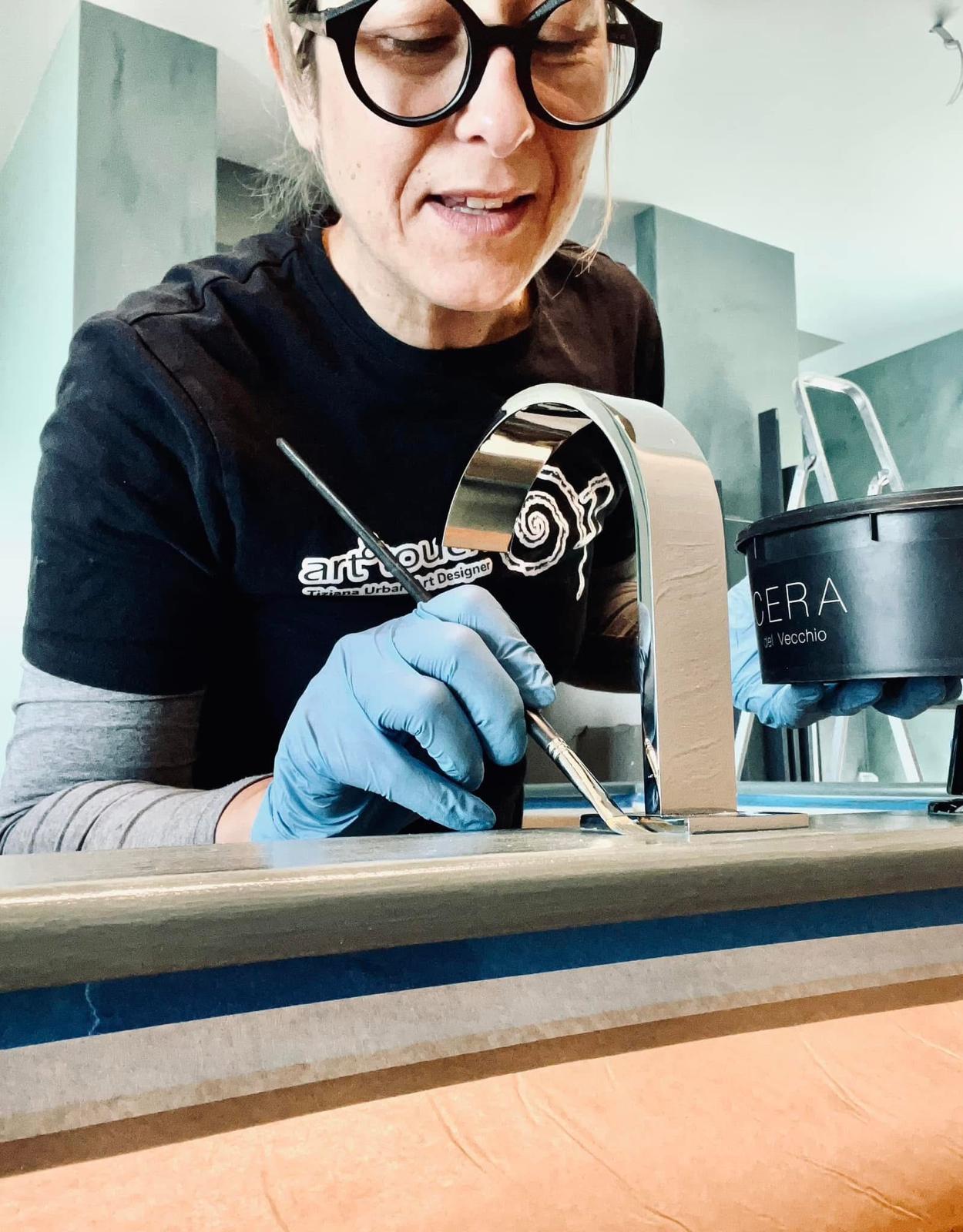 L’esperienza di Tiziana nella stesura di materiali differenti le ha permesso di avvicinarsi con naturalezza al mondo delle resine, affrontando nuove sfide e ampliando progressivamente le proprie competenze. Oggi lavora sia su pareti che su pavimenti, applicando la resina anche sui complementi d’arredo, per una personalizzazione completa di ogni elemento.